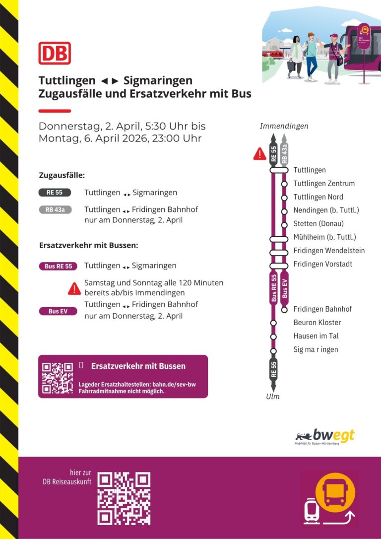 Zugausfälle und Ersatzverkehr mit Bus Tuttlingen ◄► Sigmaringen