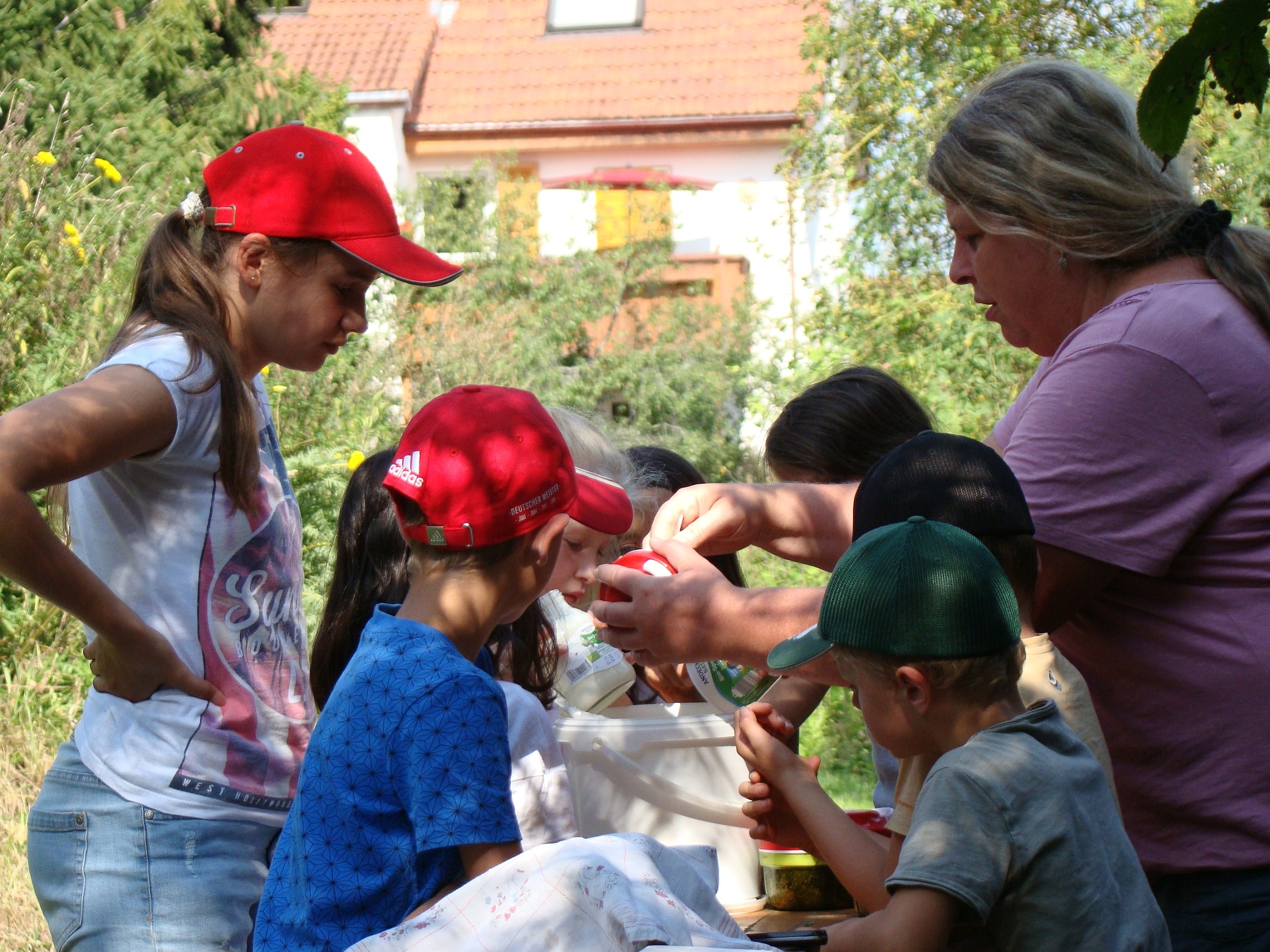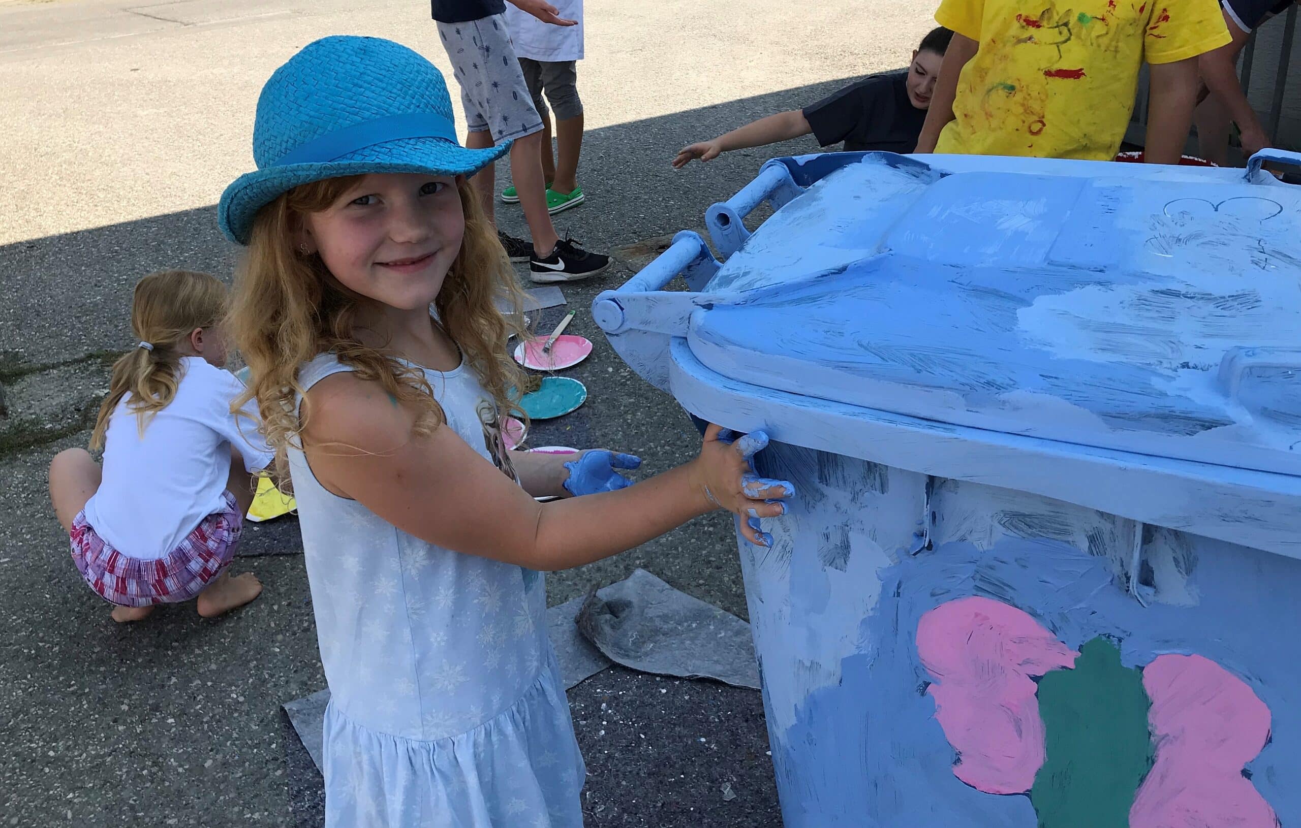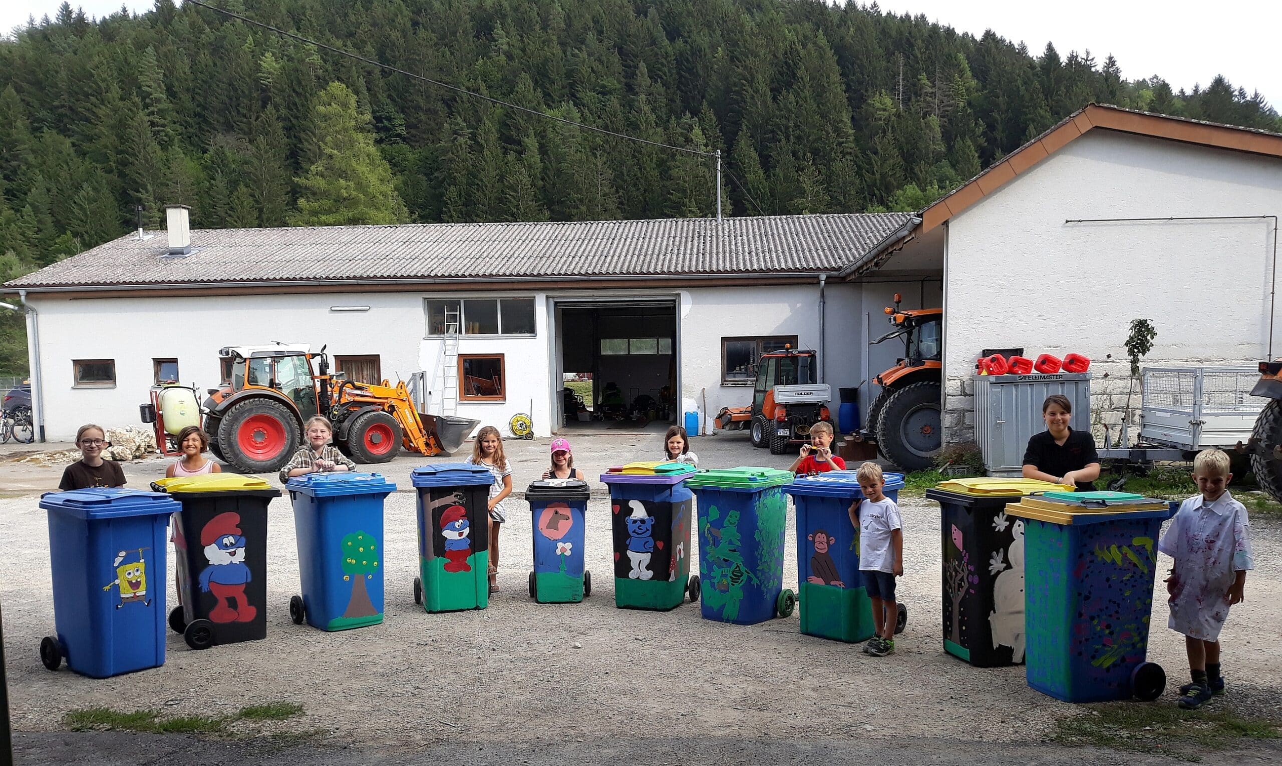 In der letzten Woche organisierte das Team der Kinderkleiderbörse mit Maler Bladt zwei Nachmittage, an denen die tristen Mülltonnen von zuhause angemalt werden durften und eine Gruppe fuhr nach Liptingen zu Christiane Denzel in die Biogärtnerei ‚Breite Wies‘, um einiges über nützliche Pflanzen und Tiere zu erfahren. Danach folgte nur noch das Abschlussfest.