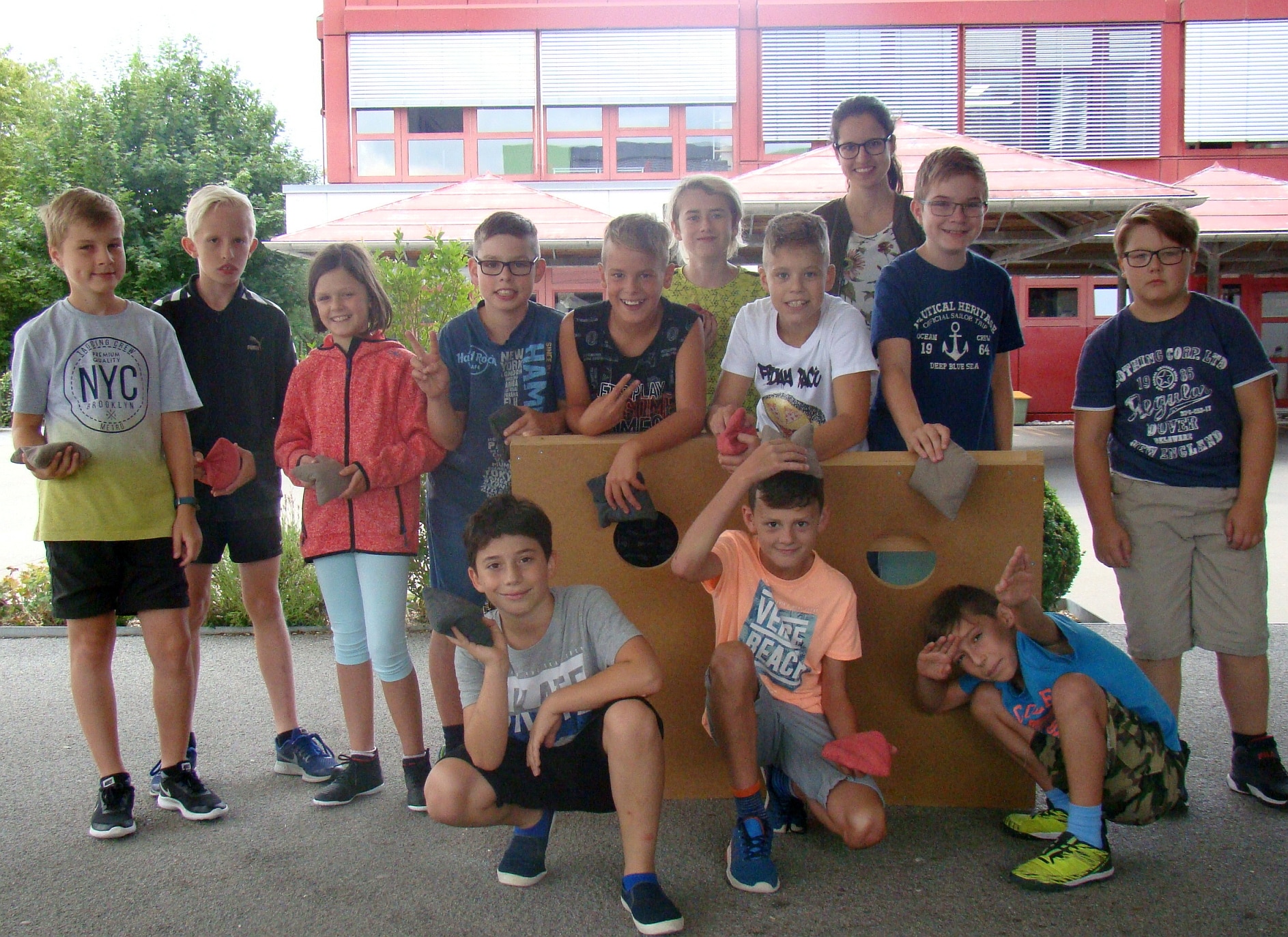 Viele Kinder nahmen in diesem Jahr wieder das Angebot des Modellflugvereins Tuttlingen-Nendingen wahr, das auf dem Bräunisberg oberhalb Stettens stattfand. Die Flugschüler stellten sich sehr gut an und hatten großen Spaß. Lustig war’s auch beim Cornhole-Spiel an der Realschule. Die kleinen Kornsäckchen fanden nicht so einfach ihren Platz auf den Spielbrettern und schon gar nicht in den Löchern. Die Teilnehmer waren aber mit Eifer dabei und alle erhielten kleine süße Überraschungen zum Abschluss der Mini-WM. Freilichtmuseum Neuhausen mal anders hieß es diesmal am Schweizer Nationalfeiertag, wo unsere Kinder 1.-August-Weggen backen durften und zusätzlich noch die Rallye im Dorf absolvierten. Im Scala-Kino Tuttlingen lief für unsere ältere Gruppe der Film „Die Unglaublichen 2“. Der war toll und auch die Jüngeren durften zur Filmvorführung und zusätzlich zum Blick hinter die Leinwand dorthin. Großartig war auch der Tag in der Bonbon-Manufaktur in Eigeltingen, dem Freibad im CampingFerienpark Orsingen und der Lochmühle. Das Programm hatte aber noch weitere Schmankerl vorgesehen, die gesamte Ferientage ausfüllten.