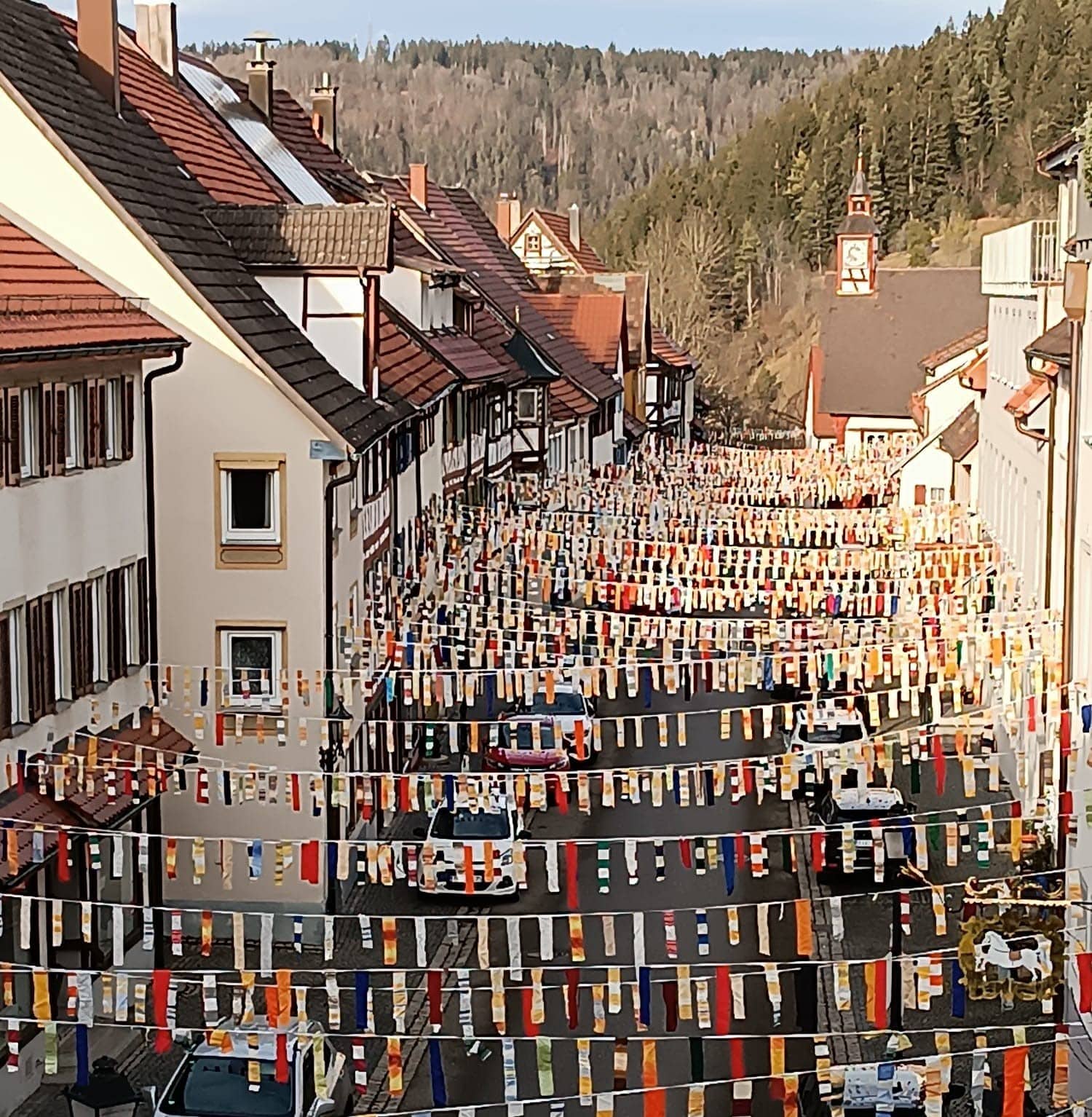 Die rund 10 Kilometer Fasnetsbändel sorgen nicht nur für ein schönes Bild im Städtle, sondern kündigen auch die heiße Phase der Vorbereitung auf die diesjährige Fasnetskampagne an. Diese ist dieses Jahr besonders kurz und damit intensiv. Da die Müllfahrzeuge nicht mehr das Städtle anfahren können, werden die Anwohner gebeten die Mülleimer zu den üblichen Abstellorten vor dem Stadttor bzw. am Lautenbach zu bringen.