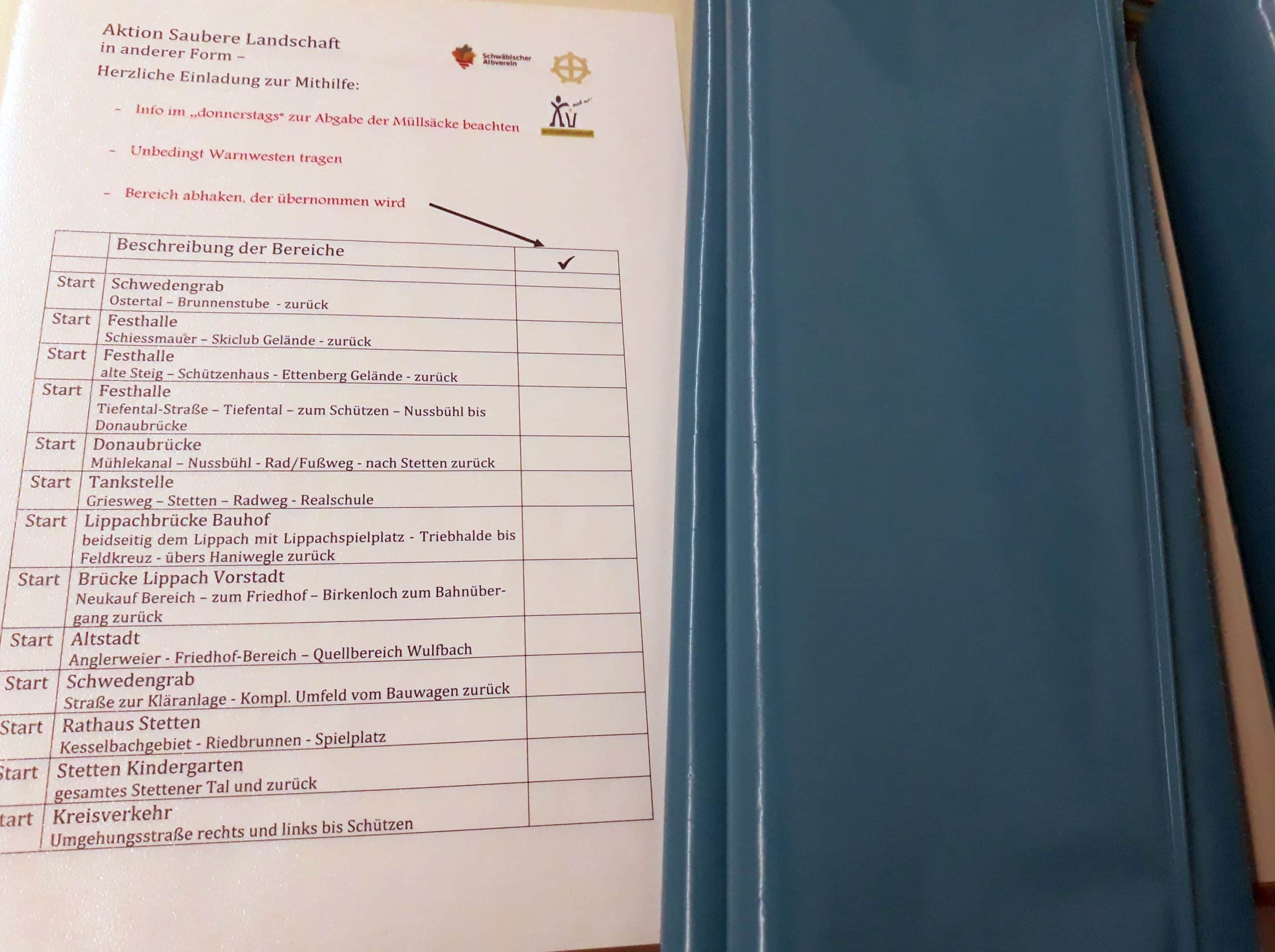 Wer bereits im Vorfeld in individueller Form Müll eingesammelt hat, ist zum gemeinsamen Abschluss der Aktion ab 11:30 Uhr beim Bauhof eingeladen und bringt seinen gesammelten Müll mit. Alle Helferinnen und Helfer bekommen, neben einem Vesper, auch eine kleine Belohnung.