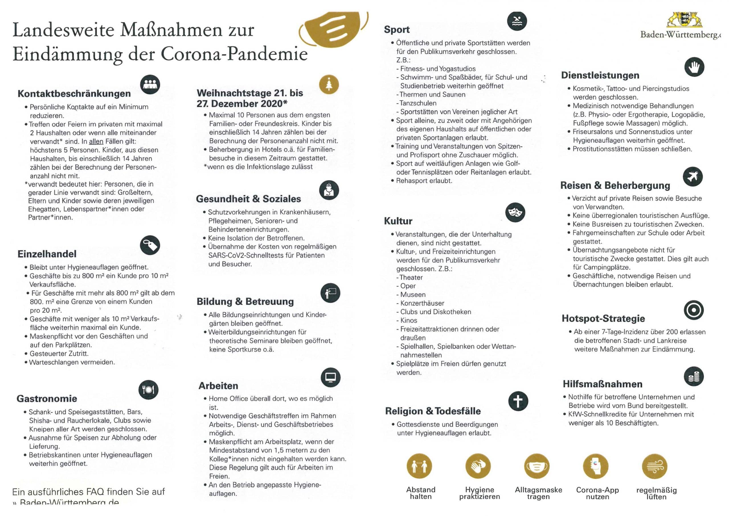 Mit dem heutigen Tag treten weitere Maßnahmen im Rahmen der aktuellen Corona-Verordnung in Kraft. Bleiben Sie vorsichtig, vernünftig und vor allem gesund! Hier die Übersicht über die Änderungen…