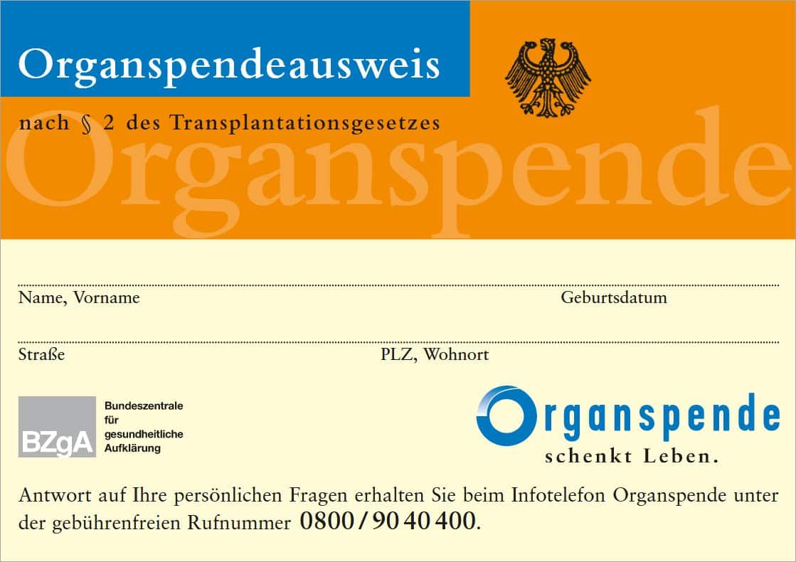 Mit der Dokumentation der persönlichen Entscheidung, kann man auch seine Angehörigen entlasten. Ohne Organspendeausweis müssen die Angehörigen nach dem ihnen bekannten oder mutmaßlichen Willen der verstorbenen Person entscheiden. Der Organspendeausweis enthält eine schriftliche Willenserklärung für den Todesfall. Darin erklärt die ausstellende Person, ob sie mit einer Überlassung sämtlicher oder einiger Organe und Gewebe zu Spendezwecken einverstanden ist oder eine Entnahme ablehnt. Weitere Informationen zum Thema erhalten alle Interessierten am Infotelefon Organspende der Bundeszentrale für gesundheitliche Aufklärung in Zusammenarbeit mit der Deutschen Stiftung Organtransplantation wochentags von 9 bis 18 Uhr unter 0800 90 40 400. Der Anruf ist kostenlos.