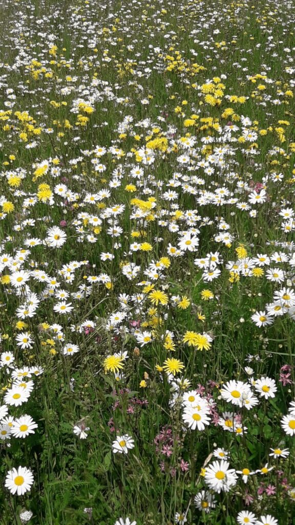 Die ausgebrachten Mischungen sind so angelegt, dass sie sowohl großen Nutzen für die Insektenwelt bringen als auch unser menschliches Auge erfreuen. Sie bestehen zum Großteil aus mehrjährigen Arten an Blumen und Gräsern, die bei richtiger Pflege über Jahrzehnte als Wiesengesellschaft Bestand haben können. Das ist vor allem deshalb wichtig, weil die meisten Insekten den Boden zum Brüten und / oder Überwintern nutzen und damit darauf angewiesen sind, dass die Bodenstruktur nicht durch ständige Bearbeitung gestört wird.