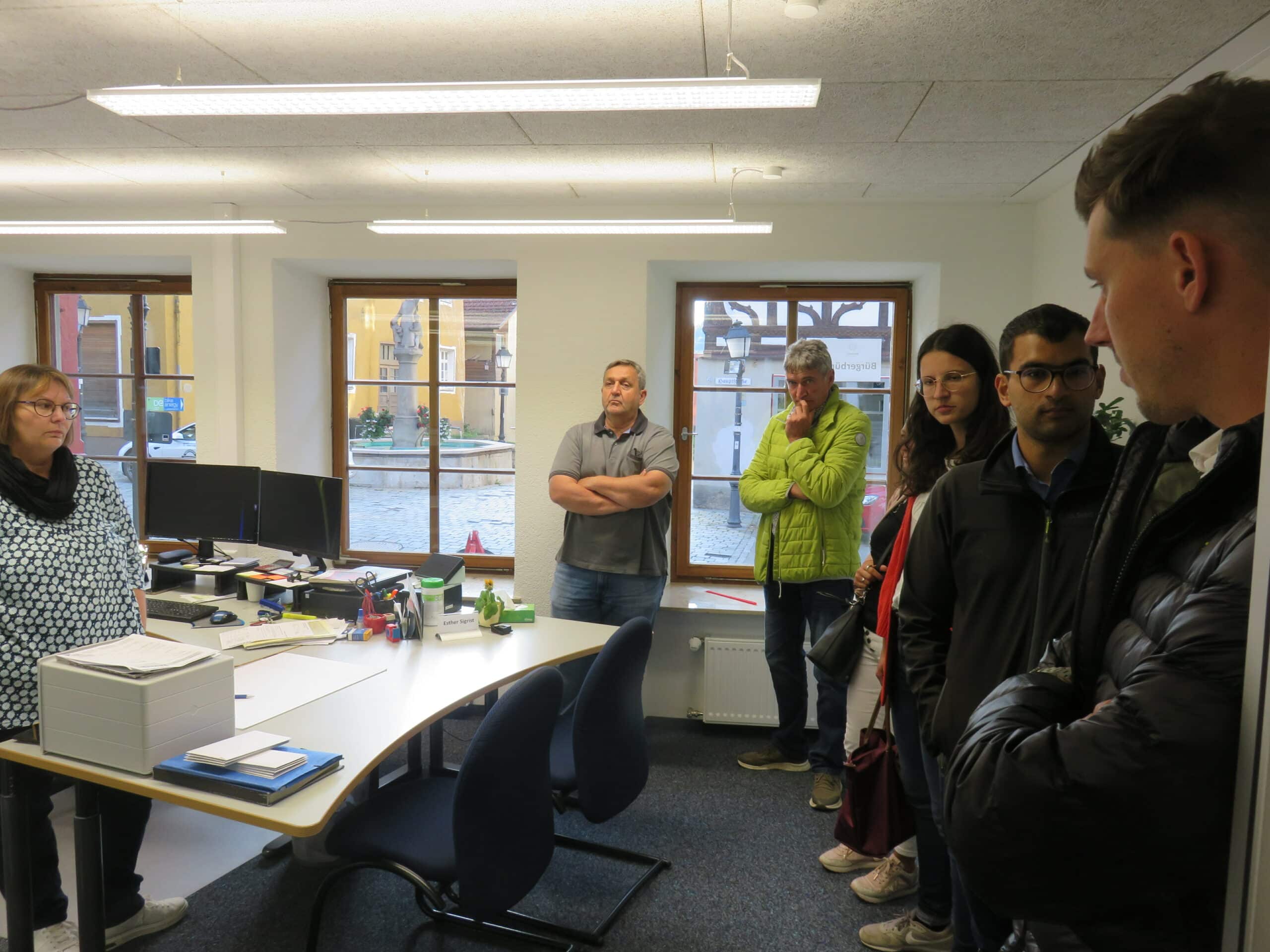 In der vergangenen Woche hat der Gemeinderat als Einstieg vor der ersten Arbeitssitzung des neu konstituierten Gremiums das grundlegend umgebaute und modernisierte Bürgerbüro in Augenschein genommen. Die etwas mehr als 70.000 Euro für die Modernisierung und Neugestaltung dieser ersten Anlaufstelle für unsere Bürgerinnen und Bürger, sind gut investiert. Der zweifelhafte Charme der 1960´er Jahre gehört der Vergangenheit an. Unter der Projektleitung von Gottlieb Riedinger vom Verbandsbauamt und Verbandsbaumeister Aldo Menean sind helle und freundliche Räume sowie zeitgemäße Arbeitsbedingungen für die Mitarbeiterinnen geschaffen worden.
