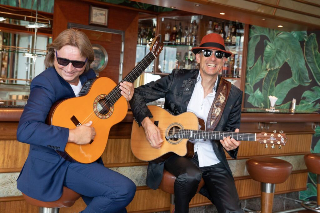 2021 feierten sie ihr 15-jähriges Bühnenjubiläum und zelebrieren seit Beginn als Duo „Magic acoustic Guitars“ pure meisterliche Spielfreude. Roland Palatzky und Matthias Waßer versprühen Harmonie und markantestes Stilelement der beiden Ausnahmegitarristen ist die percussive Deckenarbeit, bei der die Fingerknochen fantastisch effektiv auf die Hölzer der Edelinstrumente krachen und in eine einzigartige Klangsymbiose münden. Es wird geklopft, geschabt und gekratzt oder mit dem Violinbogen und Bottleneck gespielt. Von temporeich bis besinnlich werden alle musikalischen Register gezogen. Leichtfüßig und tänzerisch-elegant ist das musikalischer Klangzauber auf technisch allerhöchstem Niveau. Die einfallsreiche Programmgestaltung der beiden Profis erstreckt sich von zahlreichen hochkarätigen Eigenkompositionen über klassische Stücke wie Mozarts „Rondo a la Turca“, Glenn Millers „In the Mood“ bis hin zu Popklassikern wie „Samba Pa Ti“, „Sultans of Swing“ oder „Tears in Heaven“. „Magic acoustic Guitars“ leben und lieben ihre Musik, geben den Melodien und Instrumenten mit ihrer absolut professionellen Virtuosität leidenschaftlichen Charakter. Das brachte dem Duo bei der Goldenen Künstler-Gala die Auszeichnung „Künstler des Jahres 2014“ in der Sparte „Instrumentalisten“ ein. Zahlreiche prominente Engagements und TV-Auftritte sind ein weiterer Beleg ihrer fesselnden Popularität, mit der sie ihr Publikum restlos in ihren Bann ziehen. Weitere Informationen findet man unter: http://www.magic-acoustic-guitars.com