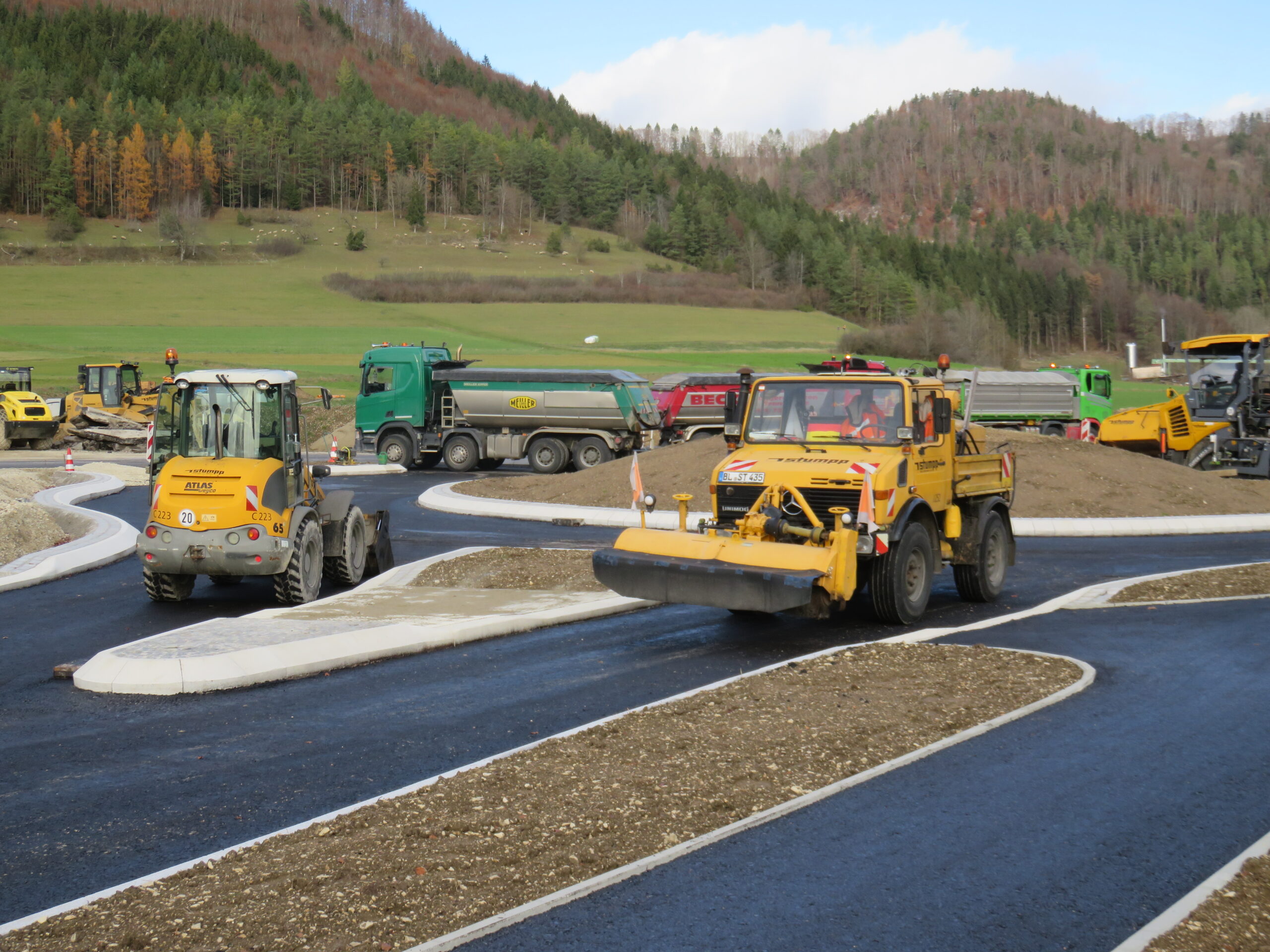 Trotz widriger Witterungsbedingungen mit starkem Regen wurde mit Hochdruck gearbeitet. Im Bauzeitenplan wurde eine Freigabe des Kreisverkehrs vor den Weihnachtsfeiertagen eingeplant. Sofern die Witterung einigermaßen mitspielt in den kommenden Wochen, kann die Fertigstellung und Freigabe vermutlich einige Tage vorher als ursprünglich geplant erfolgen. Durch den erfolgten Einbau ist sichergestellt, dass es keine Winterbaustelle geben wird. Erfahrungsgemäß stellen die Mischwerke spätestens in der Woche vor den Weihnachtsfeiertagen ihren Betrieb ein und gehen in Revision. Diese Gefahr eines monatelangen Provisoriums besteht nicht mehr. Die Umfahrung der Kreisverkehrsbaustelle sowie die Baustellenzufahrt zum Edekamarkt Beha bzw. der Bäckerei Buschle funktionieren gut. Es gab bisher noch keinen Unfall. Die Bevölkerung hat sich schnell auf die neue, temporäre Verkehrssituation eingestellt.