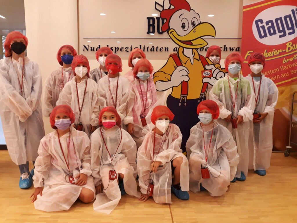 Die Stadt organisierte am Dienstag dann einen größeren Ausflug. Mit der Bahn nach Mengen, zu Gaggli, ins Freibad, durch die Stadt… Das Motto war „Nudeln, Wasser, Eis“ – es war alles dabei! In der Bahn mitunter noch etwas beengt, war es dann im Gaggli-Nudelhaus der Firma Buck angenehm. Nina Buck informierte die Kinder und die erwachsenen Begleiter über die Produkte, die im Stadtteil Ennetach seit vielen Jahren hergestellt werden. Nachdem alle die Schutzkleidung angelegt hatten, schloss sich eine interessante Führung durchs Werk an. Im schönen Mengener Freibad, das nur ein paar Schritte entfernt ist, genossen die Mühlheimer Gruppe dann den Nachmittag beim Schwimmen, Rutschen und Spielen und die meisten holten sich auch einen kleinen Imbiss und am Kiosk – und natürlich musste bei den heißen Temperaturen auch Flüssigkeit nachgefüllt werden. Auf dem Weg zurück zum Bahnhof ging es durch die historische Stadt, man suchte die Flüsse Ablach und Ostrach, die Reste der alten Stadtmauer und die Kinder bekamen einige weitere Infos über die Fuhrmannsstadt. In einem der vielen Eiscafés dann für alle zum Abschluss noch ein Eis. Prima!