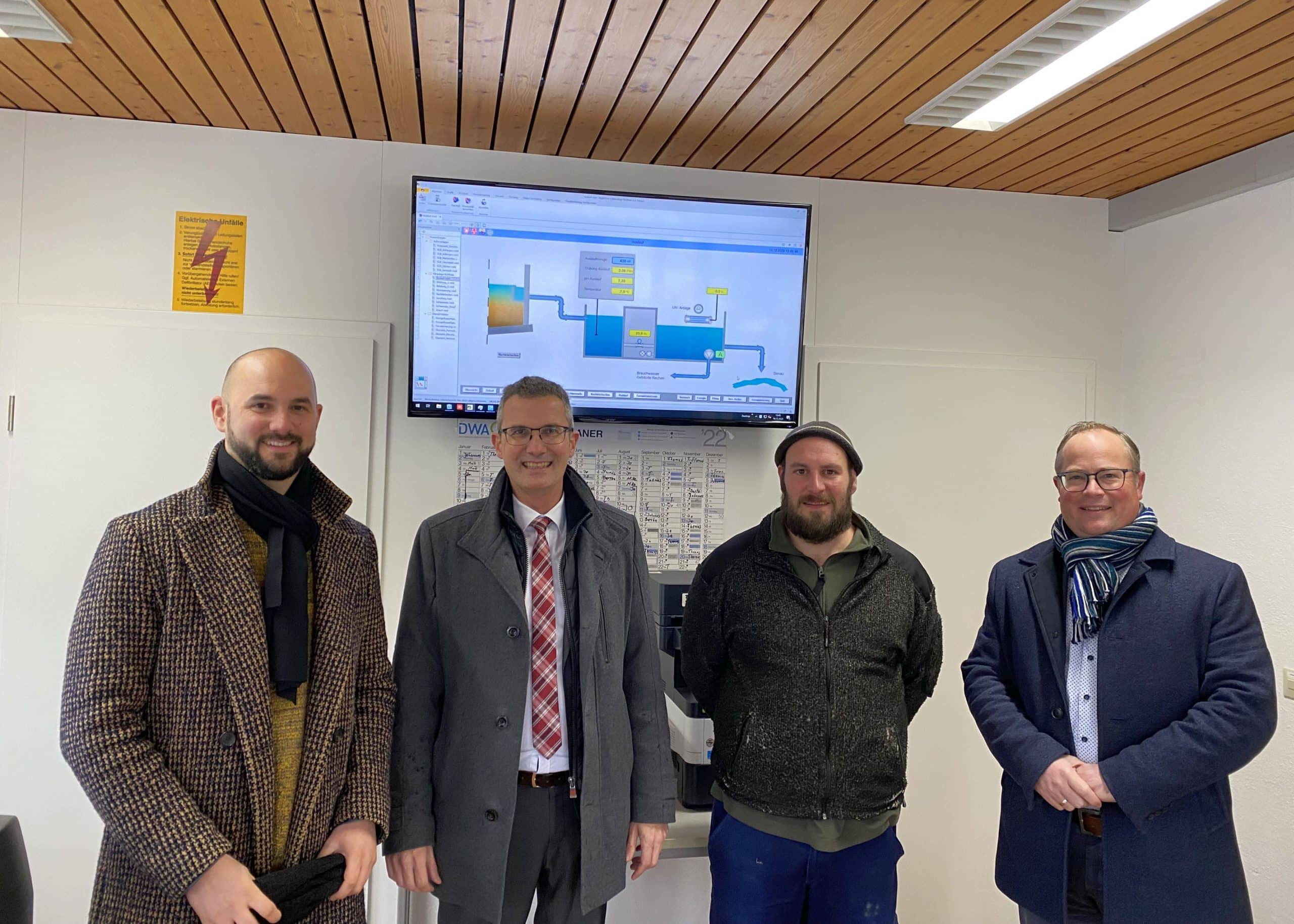 Auf gute Zusammenarbeit (von links): Bürgermeister Christian Abert, Verbandsvorsitzender Jörg Kaltenbach, Franz Bucher sowie stv. Verbandsvorsitzender Benedikt Buggle. Klärwärter Thomas Buschle war leider erkrankt.