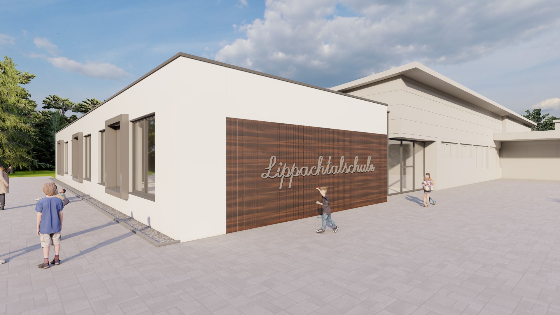 Die Nachfrage seitens der Familien nach Betreuungsangeboten ist in den vergangenen Jahren stetig gewachsen. Deshalb stößt die Lippachtalschule bereits heute mit ihrem Betreuungsangebot räumlich an ihre Grenzen. Damit alle Kinder und das Betreuungsteam unter der Leitung von Diane Wöhrle möglichst gute Rahmenbedingungen vorfinden, hat sich der Gemeinderat und die Stadtverwaltung bereits im Herbst 2021 zusammen mit Schulleiter Walther Martin und Architekt Franz Eisele auf den Weg gemacht einen Erweiterungsbau zu planen. Dieser grenzt direkt an den im Jahr 2007 renovierten Altbauteil der Schule an. Der ebenerdige Baukörper in ökologisch zeitgemäßer Holzständerbauweise hat eine Grundfläche von rund 300 Quadratmetern. Es entstehen drei zusätzliche Räume für die Betreuungsangebote. Eine mobile Trennwand ermöglicht, dass zwei der Räume zu einem großen Raum vereinigt werden können. Das neue Gebäude wird, wie das gesamte Schul- und Sportzentrum, mit Nahwärme versorgt und bekommt eine Photovoltatikanlage auf das Flachdach.