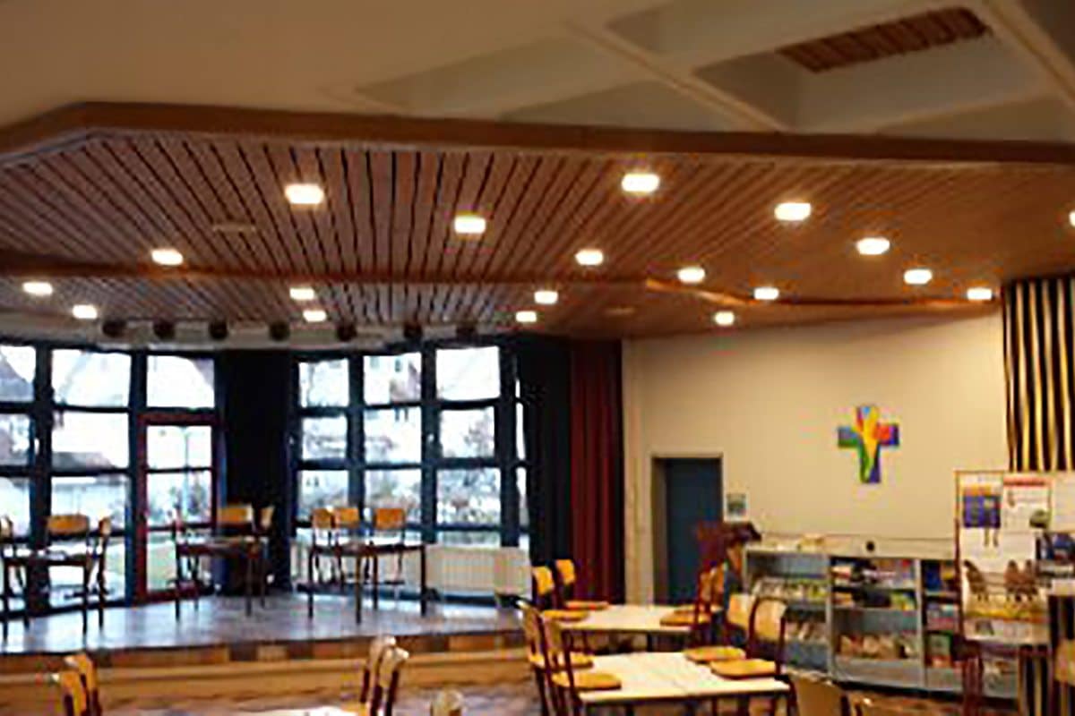 Im Bereich der Klassenzimmerbeleuchtung haben wir uns für einen Umrüstsatz der Firma Ridi entschieden. Dieser kann in die vorhandenen Lampenkörper in den Kassettendecke eingebaut werden und stellt somit die wirtschaftlichste Lösung dar. Auch die Flurbeleuchtung und die Beleuchtung der Aula wurde komplett erneuer. Die Firma Elektro Waizenegger hat nach erfolgter Ausschreibung den Zuschlag für die Ausführung der Arbeiten erhalten.
