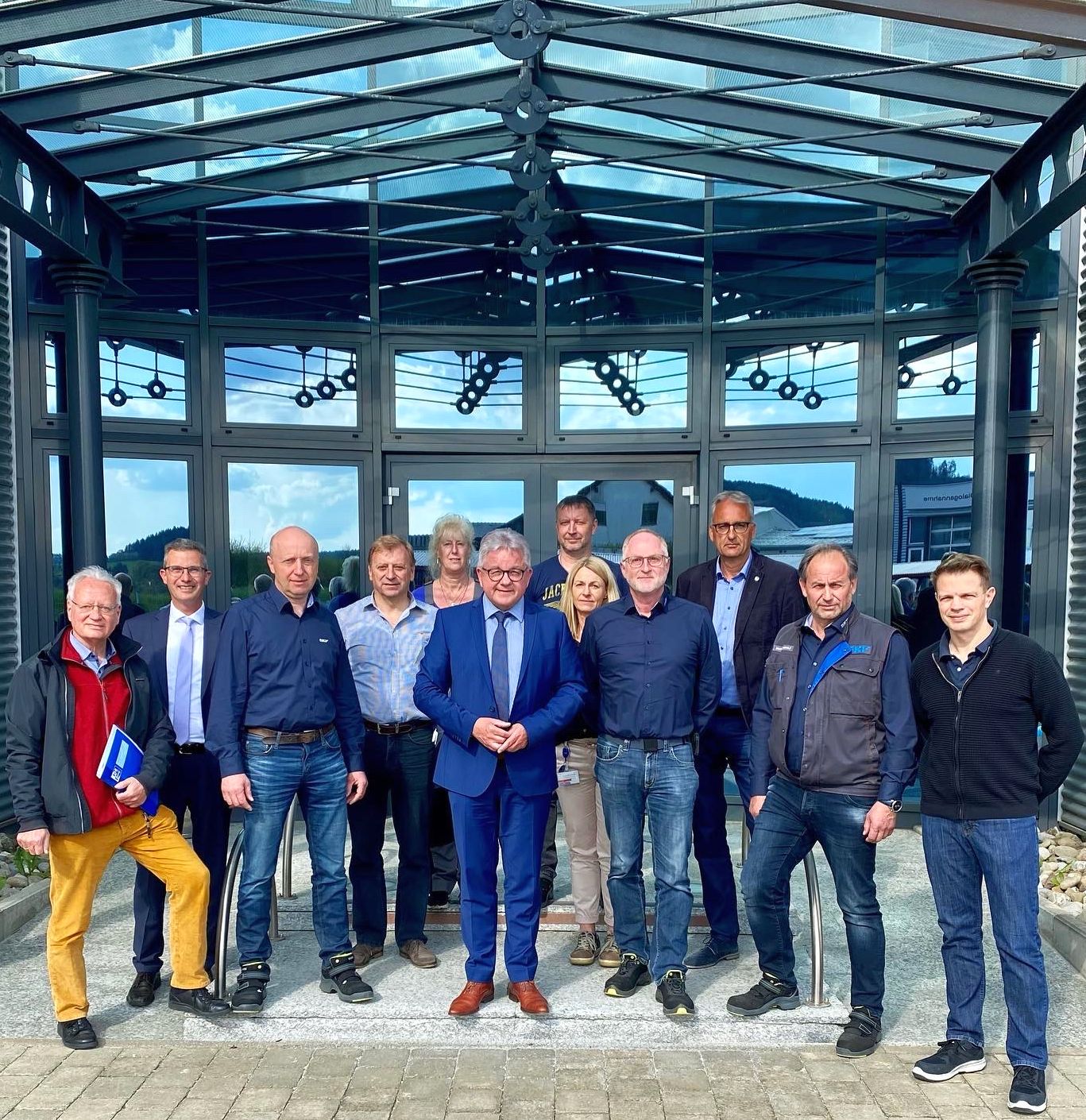 Guido Wolf (fünfter von links) informierte sich im Mühlheimer Werk beim Betriebsrat und den Führungskräften zusammen mit dem kath. Betriebsseelsorger Thomas Maile und Bürgermeister Jörg Kaltenbach (erste und zweite von links)