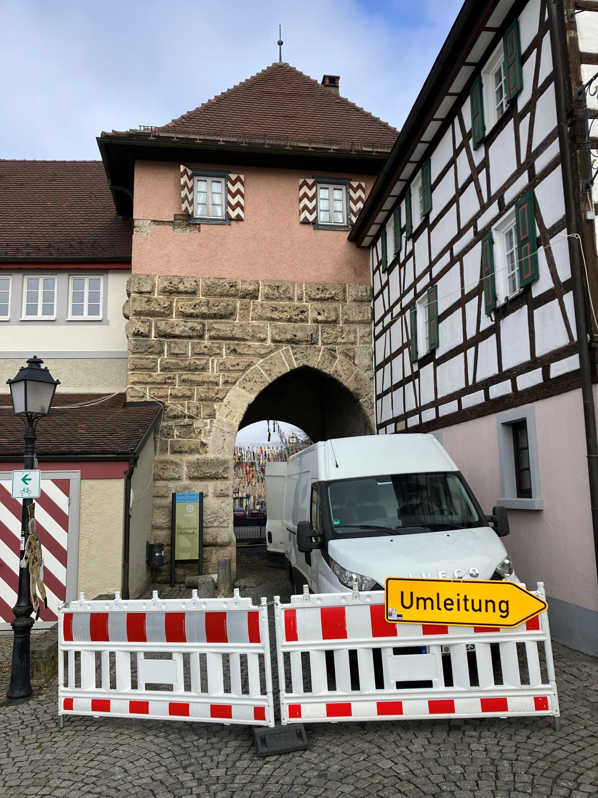 Seit Jahren sind die Senkungen im Bereich der Tordurchfahrt ein Ärgernis. Schürfen haben bereits vor mehreren Jahren die Erkenntnis gebracht, dass der Unterbau der Tordurchfahrt als auch des Rathausvorplatzes aus heutiger Sicht nicht geeignet ist, um Lasten dauerhaft aufzunehmen. Deshalb muss der Unterbau sachgerecht neu aufgebaut werden. Provisorisch wurde die Tordurchfahrt instandgesetzt. Die Situation ist seitdem deutlich verbessert. Auf Sicht der kommenden Jahre, ist eine Generalsanierung aber zwingend geboten. Die Tordurchfahrt soll mit der Sanierung des Rathausvorplatzes angegangen werden. Ökonomisch sinnvoll ist es die Tordurchfahrt und den Rathausvorplatz gemeinsam auszuschreiben, aber baulich zeitversetzt abzuarbeiten. So ist die Oberstadt auch für die Feuerwehr und andere Rettungsdienste durchgängig erreichbar. Auch in Sachen Müllabfuhr wäre ein paralleles Bearbeiten beider Baustellen nicht machbar.