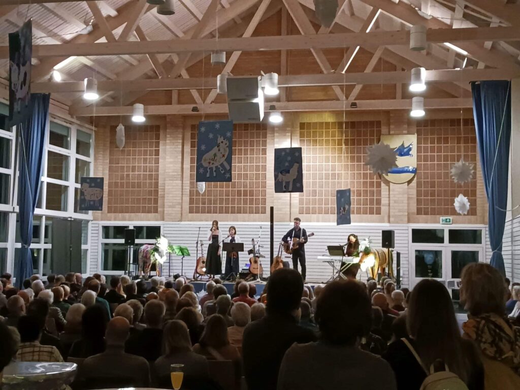 Das Benefizkonzert mit „Dos Mundos and friends“ wurde erneut zum großen Erfolg. Zahlreiche Gäste genossen den stimmungsvollen Abend im wunderschön dekorierten Gemeindezentrum. Die von den Kindern der Grund- und Realschulbetreuung gemalten Weihnachtskühe deuteten bereits auf den guten Zweck hin, dem diesmal die Spendengelder zufließen werden. „Women For Women“ wird erneut bedacht und damit weitere Kühe für alleinstehende Frauen in Afrika kaufen. In der Konzertpause wurde das wertvolle Engagement dem Publikum durch Christina und Bernhard Schreiber nochmals vorgestellt.