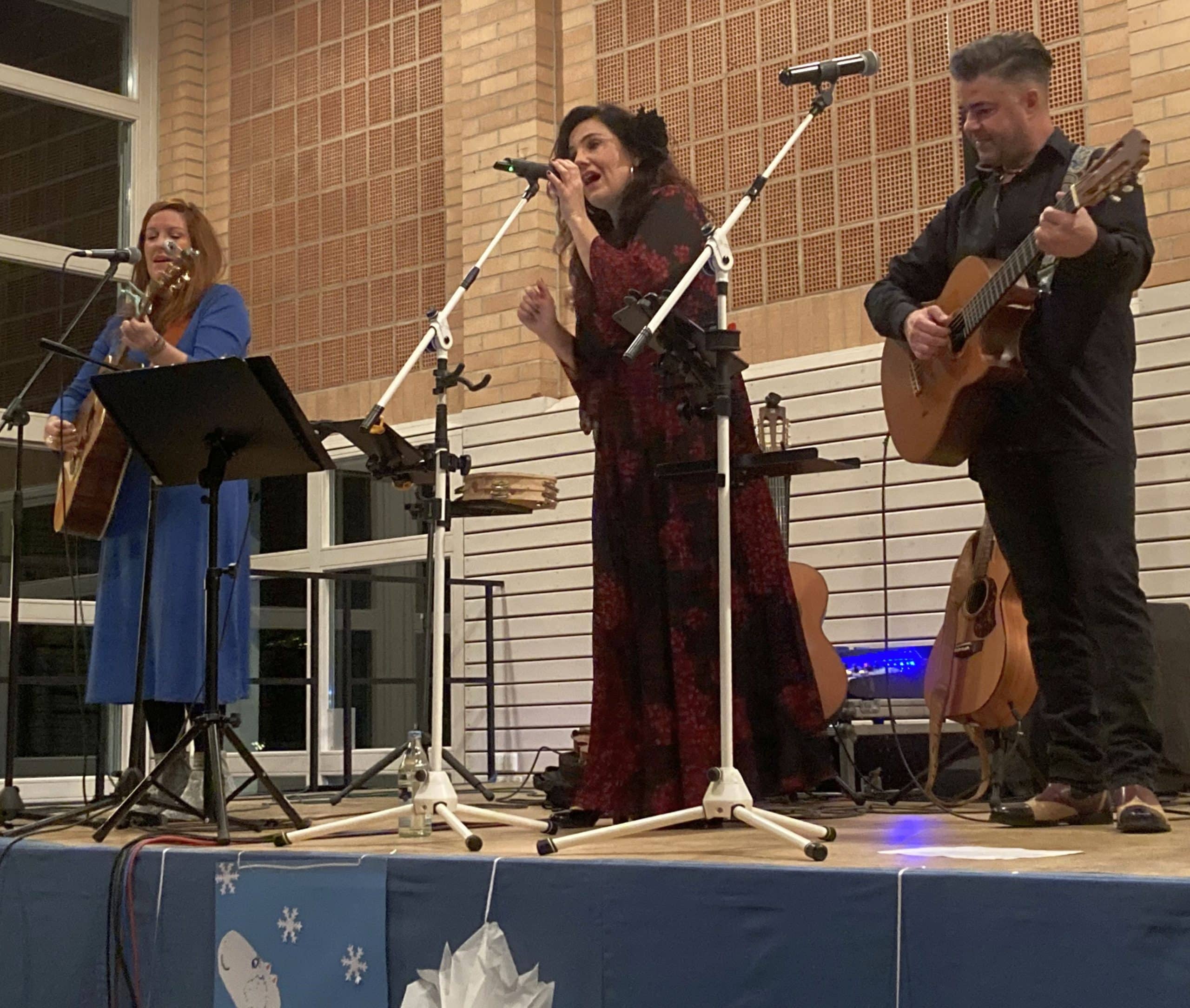 Die Corona-Pause bedeutete ein Jahr länger Warten auf das grundsätzlich alle zwei Jahre stattfindende Benefizkonzert. Die Vorfreude aber war groß und so strömten die Menschen ins Stettener Gemeindezentrum und füllten die Halle bis auf den letzten Platz. Auf der anderen Seite war auch Paddy Brohammer und Melanie Munoz, die als „Dos Mundos“ bekannt sind, der Spaß am erneuten Auftritt in Stetten anzumerken. Diesmal hatten sie ihre Kinder Anna-Noelia und Lia-Salomé mit auf der Bühne sowie die aus Irland stammende Sängerin und Songwriterin Lynda Cullen. Sie feierte ihre Premiere in Stetten und durfte gleich den Auftakt mit einem englischen Weihnachtslied machen, dem ein deutsches und ein spanisches folgten.