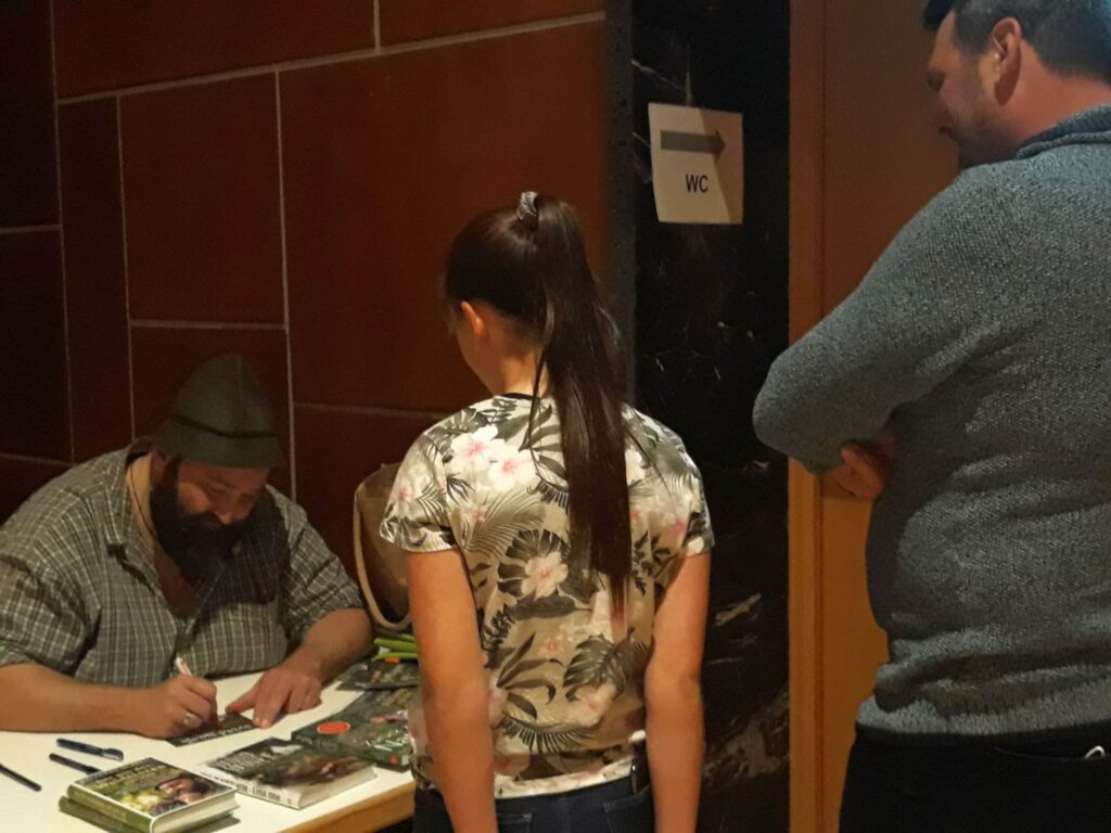 Der „Woid Woife“ schildert das absolut glaubhaft und die Besucher nehmen ihm jedes Wort ab. „Manche lieben nur noch die Tiere und hassen die Menschen, das ist absoluter Quatsch“, sagt er irgendwann. Er ist auch ein absoluter Menschenfreund und alle sind schwer beeindruckt von diesem besonderen Typen. Nachher nimmt er sich noch ausgiebig Zeit, um Autogramme für seine jungen Fans zu schreiben. Aber auch für die Erwachsenen, die teilweise weite Anfahrtswege hatten und gerne selbst Erlebtes mit ihm teilen. Am nächsten Morgen tritt Wolfgang Schreil noch in der Grundschule auf, bevor es dann wieder zurück in die Heimat geht.